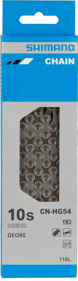 Die Shimano CN-HG54 ist eine 10-fach Kette speziell für MTB- und Trekking-Antriebe, die aber auch mit der Tiagra 4700 Gruppe kompatibel ist. Sie hat eine Laufrichtungsbindung, was die Flüssigkeit und die Leistung des Schaltvorgangs erhöht (HG-X Technologie). Auf einer Performance-Skala von 1 bis 3 ordnet die CN-HG54 sich im Mittelfeld ein.